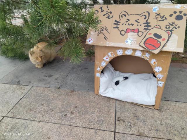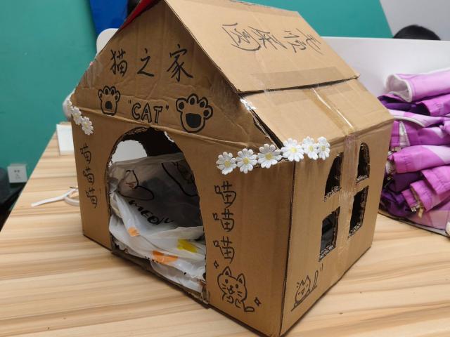活动当天,阳光明媚,校园里洋溢着青春的气息。同学们一大早便聚集在指定的活动区域,开始了紧张而有序的准备工作。在制作流浪动物小屋的环节中,同学们齐心协力充分发挥创意,利用废旧纸箱、木板等材料,搭建起一个个温馨而实用的小屋。同学们用心搭建的每一个小窝,都像是为流浪动物精心准备的避风港。这不仅是一场动手实践的盛宴,更是一次心灵的洗礼,让保护动物的意识在同学们心中生根发芽,加深了同学们对环保理念的深刻理解。
