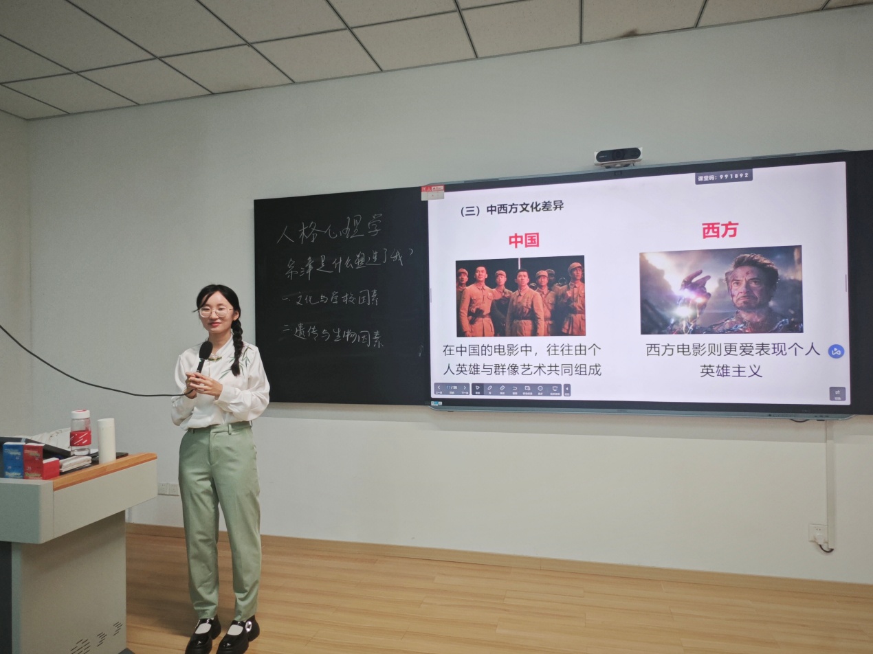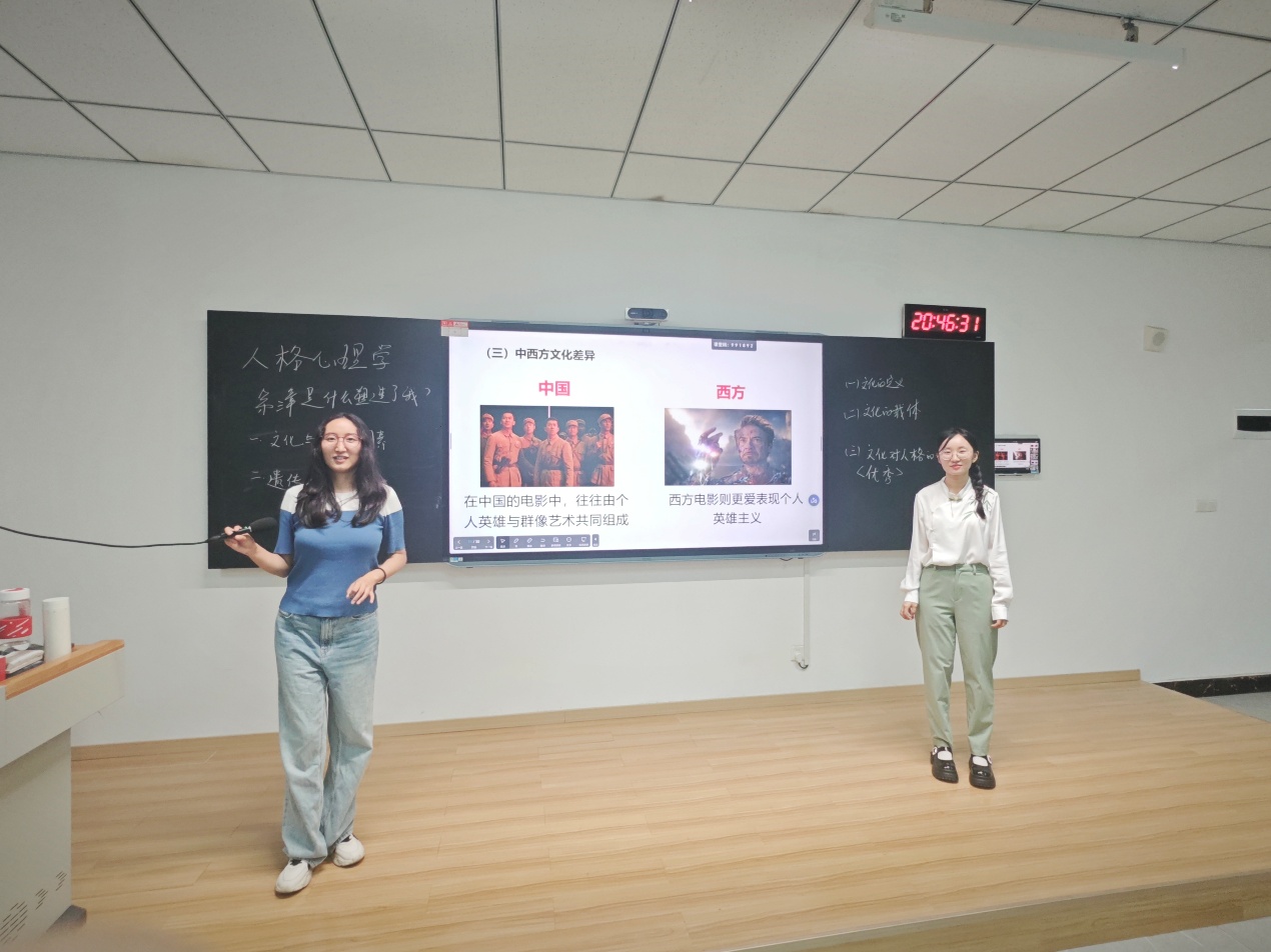 9月19日,人格心理学课堂开展了一场别开生面的跨学科对话,心理学专业的贾缨琪老师邀传播学领域的任晋茹老师,以“文化自信与人格塑造:跨越学科视角的深度解析”为核心,与同学们一起探讨文化在人格形成与发展中的作用。