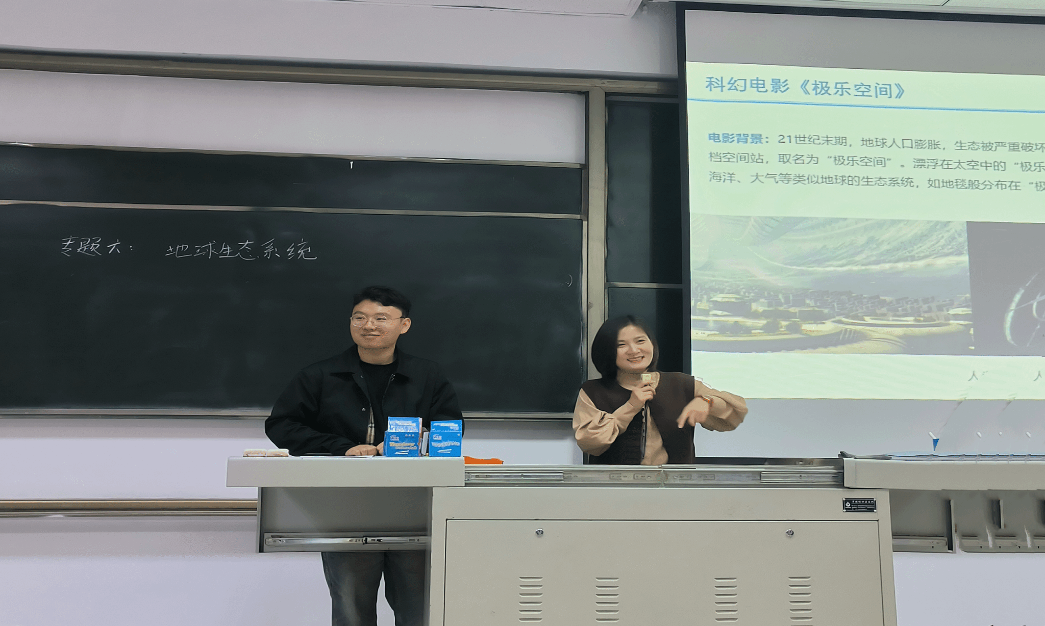 10月9日,生态环境与人类发展课堂迎来了一次广度与深度并重跨学科实践,通识教学部科学哲学专业的时笑婉老师邀请远景学院地理学背景的段永健老师共同为学生们带来了一场关于“地球生态系统”章节的精彩讲授。