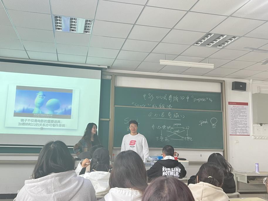 近日,“幸福课:积极心态的力量”课堂上,赵凯老师带领学生们踏上了一次深刻的“心灵之旅”,通过经典动画电影《心灵奇旅》为引,探讨何为真正的“幸福”,并从“purpose”(人生目标)与“spark”(生命火花)的差异出发,引导学生感知积极心态的力量。