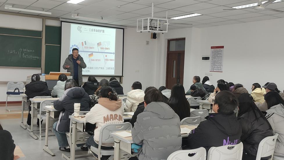 近日,在“世界文明的历程”历史课堂上,身为经济地理专业的刘伟老师邀请历史学专业的赵亚楠老师,联手为学生们带来了一场关于第一次工业革命的深度解读。从发生背景、过程到深远影响,两位老师详细阐述了这场技术革命如何改变了世界格局,并巧妙融合了课程思政元素。