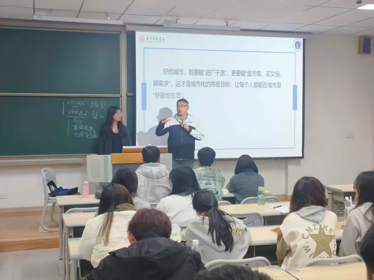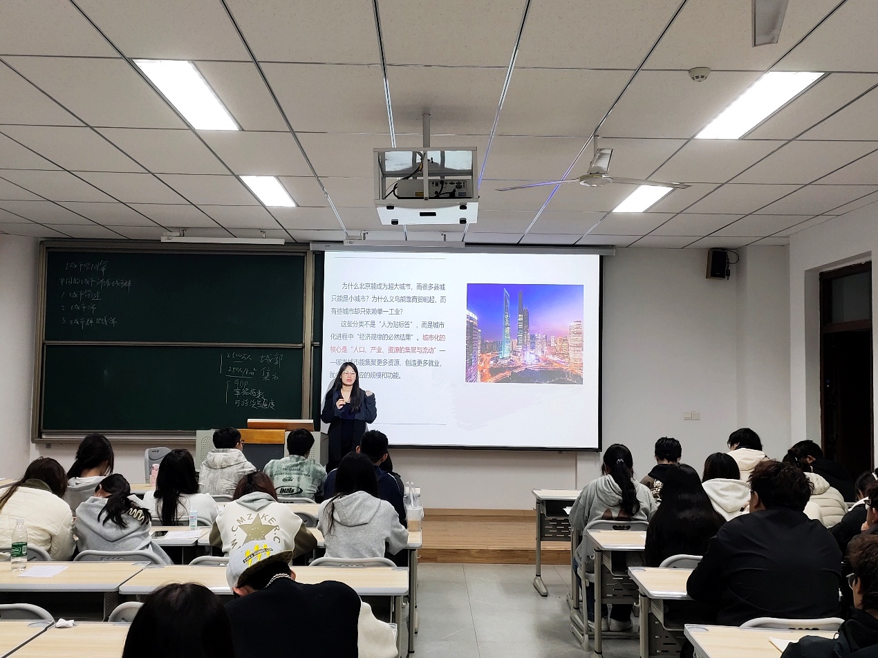 近日,在7教108教室,《中国近现代经济地理》课堂以“城市规模变化的经济逻辑与空间响应”为主题开展双师教学,主讲教师刘伟联合经济学教师宋露琴,从经济动力与地理形态双维度,解析城市规模扩张的内在机制与外在表现。
