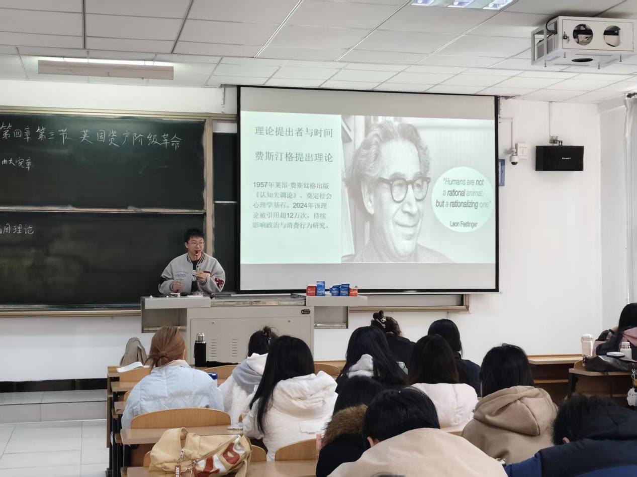 赵亚楠老师以历史学提供革命时间线、权力斗争等客观事实,赵凯老师以心理学解答决策心理动因,形成“是什么—为什么”的完整认知链条;赵亚楠老师从经济基础、政治传统等宏观层面梳理规律,赵凯老师聚焦个体与群体心理的微观视角,揭示偶然中的必然逻辑;历史叙事的严谨性与心理学分析的情感共鸣结合,让抽象事件转化为可感知的人性故事。这种“以心理解历史,以历史证心理”的教学模式,将理论融入具体历史人物与群体心理活动,赋予历史事件鲜活的人性温度。