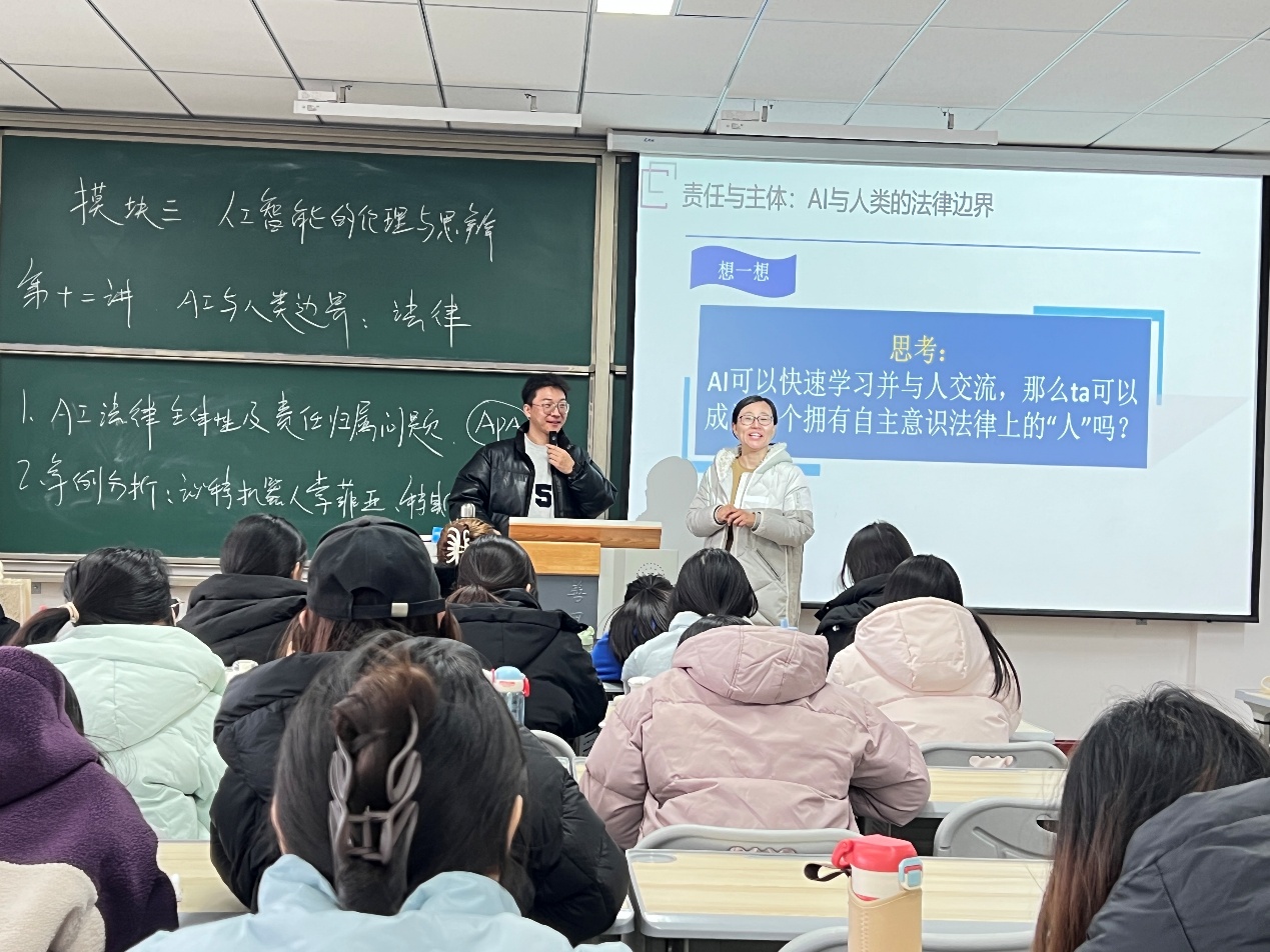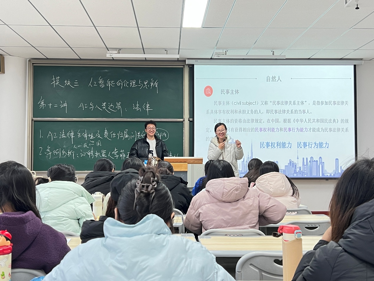 近日,赵凯老师在《人工智能与未来》课上,邀请法学背景的徐佳老师跨界联手,围绕“AI与人类边界:法律”,以“技术+法律”的双重视角将“AI能否成为法律主体”这一硬核议题转化为一堂生动有趣的沉浸式课堂。