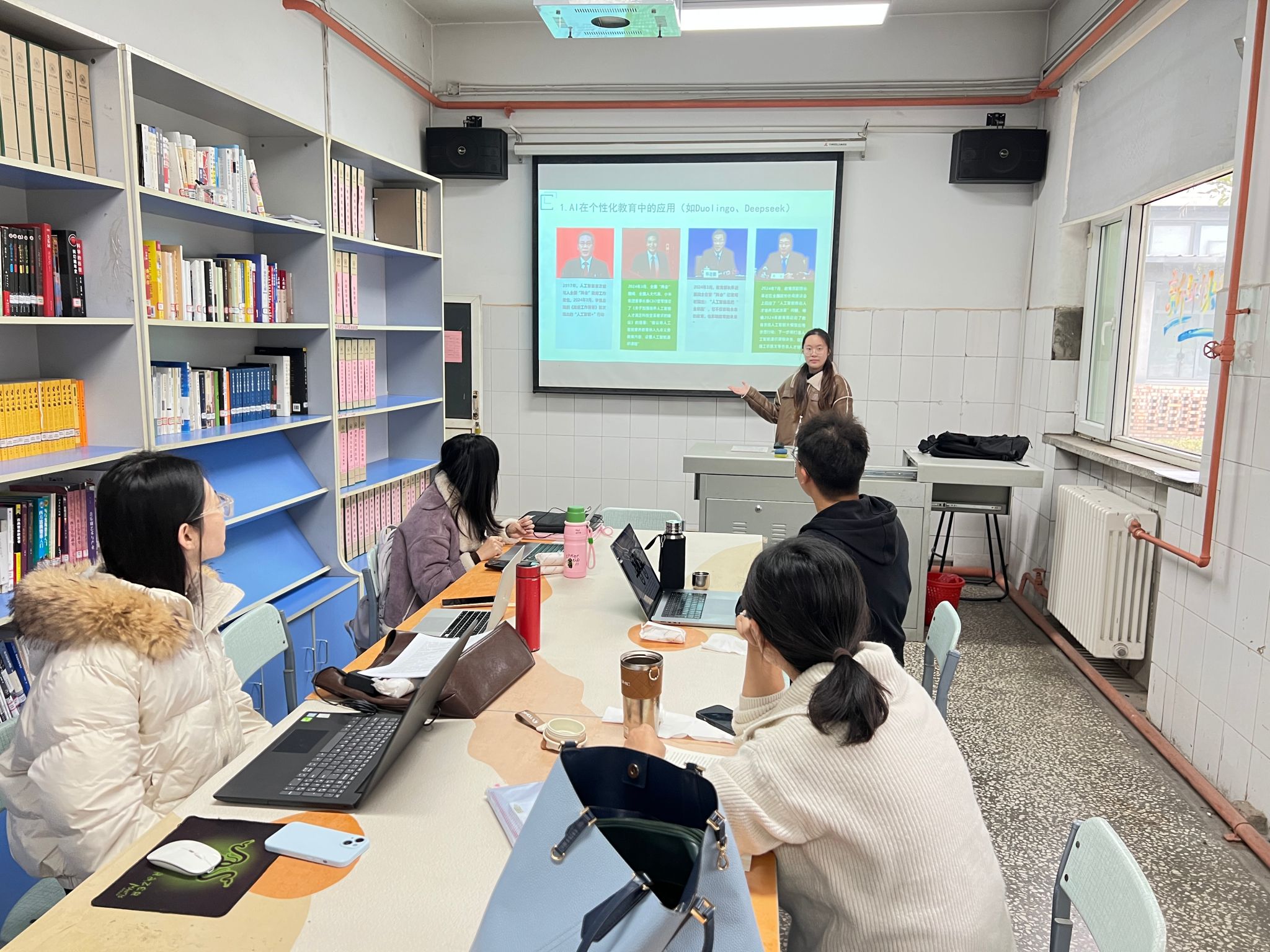 研讨伊始,团队复盘第三讲已授内容,全面梳理课堂反馈的知识点衔接、案例适配等问题,明确后续教学强化方向,为课程质量提升筑牢基础。接着,围绕第七讲“教育转型:AI定制学习之路”,王彤、李雪萌两位老师开展针对性试讲。试讲前,二人深入研读讲稿,结合课程核心目标梳理教学逻辑,明确“AI定制学习”的内涵与重点。