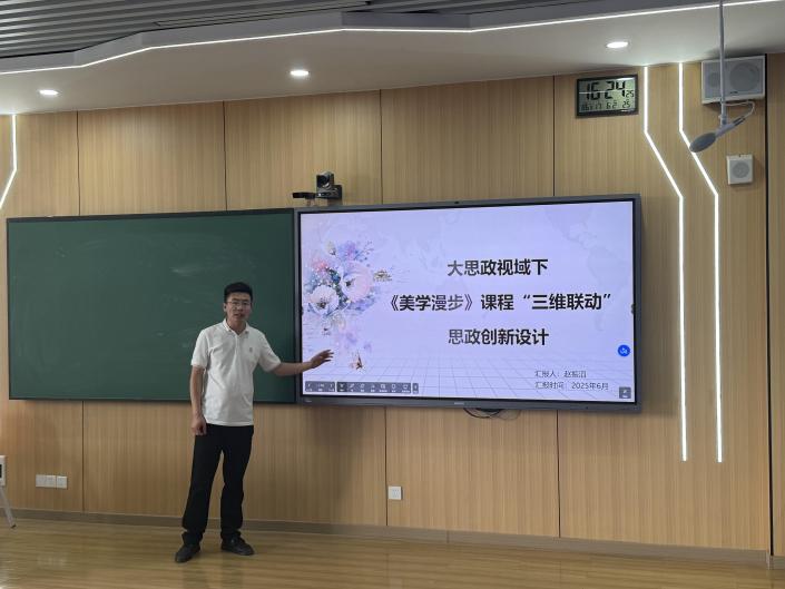 赵振滔老师在《美学漫步》课程中,创新构建了大思政视域下的“三维联动”育人体系。该体系采用“点—线—面”三层教学架构,通过“知—行—赛”三维实施策略,贯穿“前—中—后”三阶教学路径,系统实现以文化人、以美育人的教学目标。具体而言,“知行赛”策略着重培养学生的审美内化与外化能力,有效提升其审美认知与实践水平。课程实施过程中,课前注重思政元素预习,课中深化思政内涵领悟,课后强化思政实践转化。同时,通过建设案例库与视频库,不断完善课程资源体系。这一创新设计取得了显著的教学成效。
