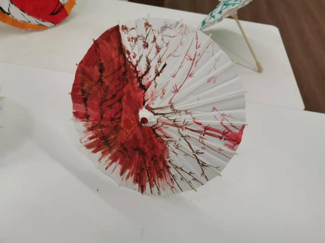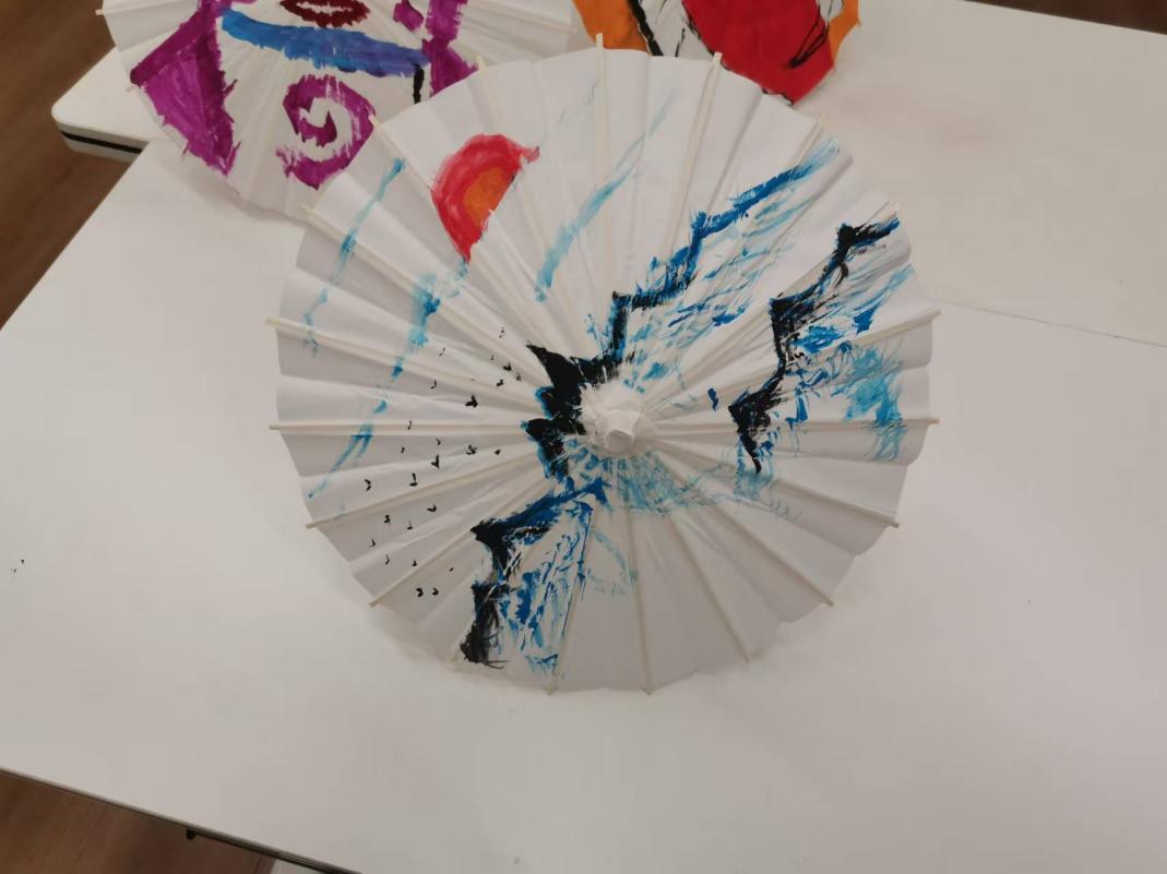 同时,这种创意活动也极大地激发了同学们的创新思维。在思考如何设计独特的纸伞图案时,同学们突破常规,尝试不同的色彩搭配和图案组合。他们不再局限于传统的绘画模式,而是将现代元素与传统文化相结合。例如,有同学将动漫人物与传统的中国山水图案融合在一起,创造出一种全新的视觉效果。这种创新思维的培养,有助于他们在今后的学习和生活中,以更加创新的视角去看待问题。