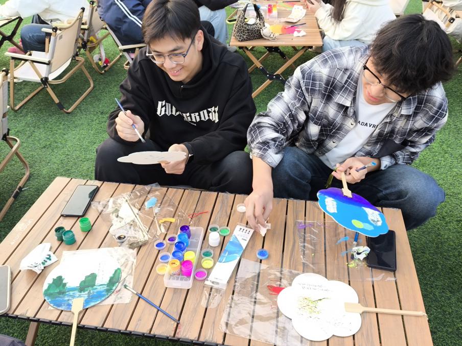 11月8日下午,通识教学部“美学漫步”课程组协同正蒙思辨协会在毣谷书院天台组织开展了第3期“花漾美学·巧手创艺坊”第二课堂活动。此次活动不仅是一次传统工艺的实践与体验,而且更是一次深入的美学教育探索,旨在通过制作团扇和漆扇,让同学们亲身感受美学的魅力,提升审美情趣,培养创新思维。