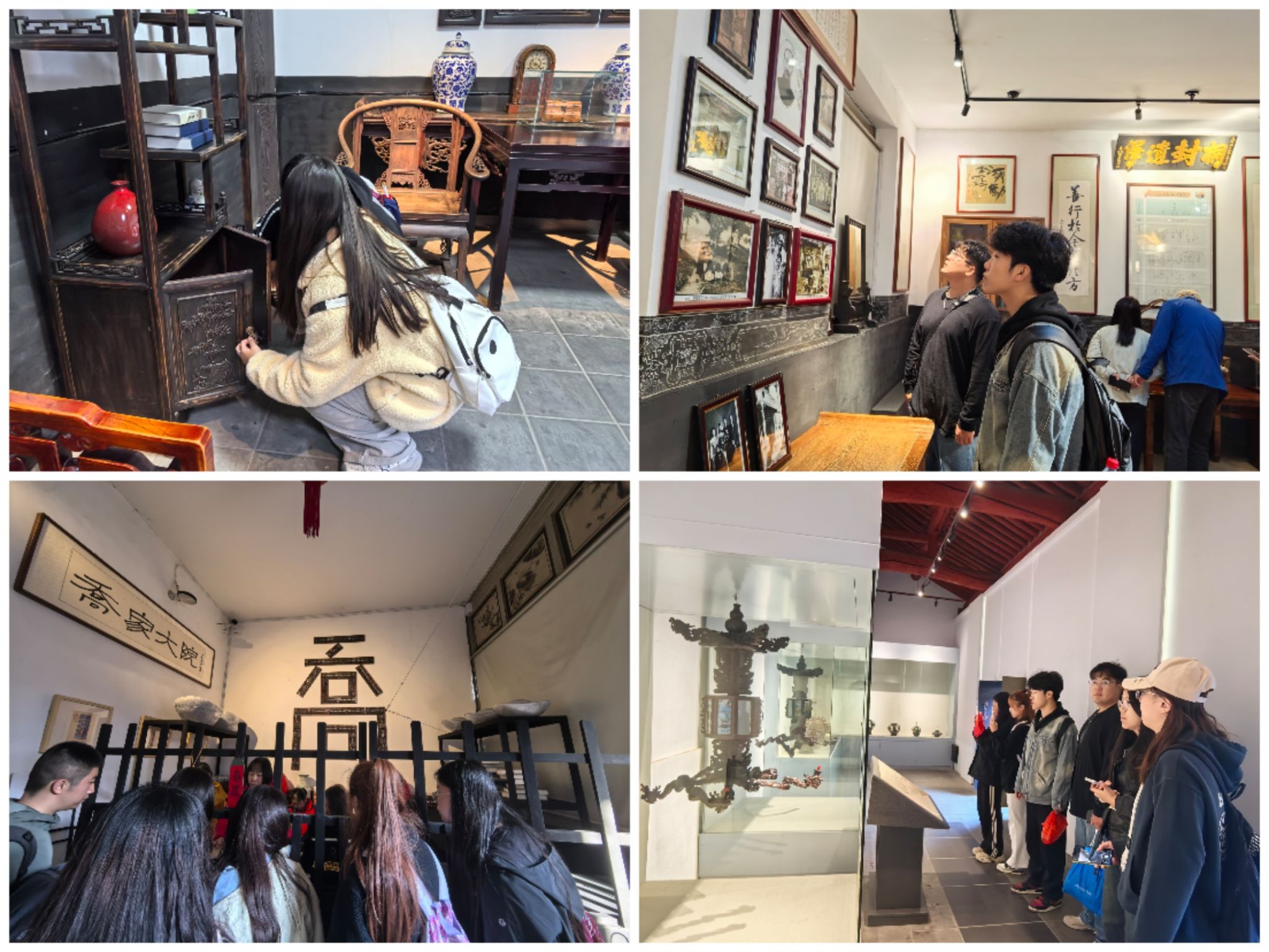 整个大院变成了移动课堂。同学们三五一队:有的举着手机边拍边录,生怕错过任何一个细节;有的站在展柜前,细细品读文物故事;更有“学霸小队”围着老师连环发问:“乔家衰败是不是因为固守传统,错过了金融变革?”“他们的股份制和现在的股权激励好像啊!”甚至有几个同学自发组成了“vlog小分队”,边游览边录制现场解说,直言要做出“晋商主题爆款视频”。